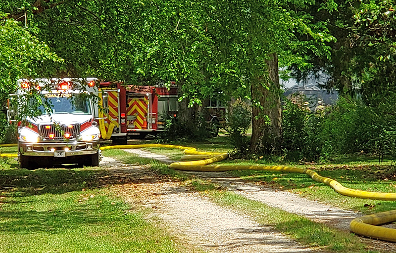 The fire was reported about 12:45 p.m. in the 3000 block of Woodbury Circle. The fire was reported to be heavily involved in the garage area of the 3,000 square foot brick home.