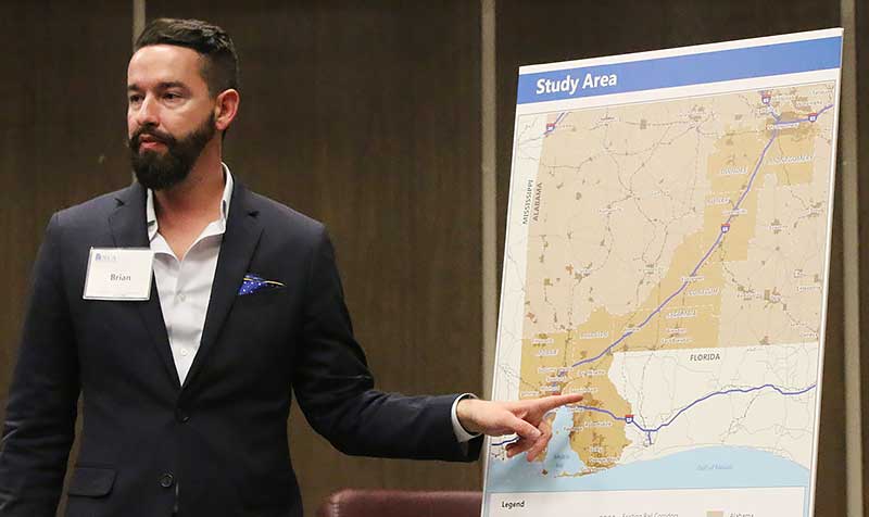 The Alabama Department of Economic and Community Affairs held a public information meeting on the study Wednesday night in Atmore, which was designated by the Legislature as Alabama’s official rail welcome station.