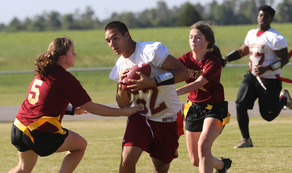 The Northview girls flag football team took on the boys football team linemen and the NJROTC Thursday in a flag football game. The linemen beat the girls 34-0, and the NJROTC topped the girls 14-6.