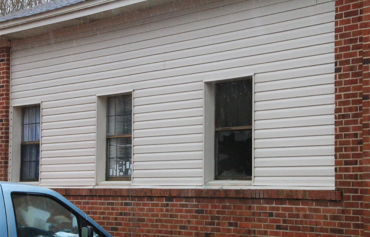 Pictured top and inset: Residents of the Enon Country Manor outside in a cool rain watching firefighters work after a resident allegedly set a fire Saturday morning. Pictured below: The fire reportedly started on a mattress. Melted blinds and a busted, smoked window can be seen in the bottom photograph. NorthEscambia.com photos, click to enlarge.