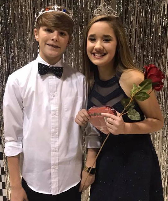 King Noah Harigel and Queen Shelby Rice reigned over the dance, along with their court: Sixth Grade Knight Bentley Van Pelt, Sixth Grade Maiden Carsyn Dortch, Seventh Grade Knight Kaden Odom and Seventh Grade Elianna Morales.