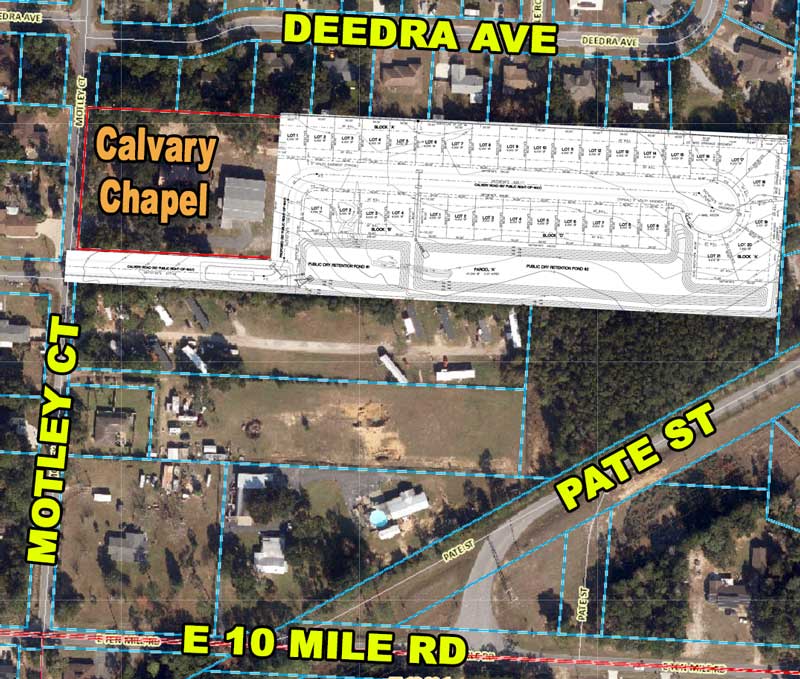 If the proposal by Calvary Ridge, LLC is approved, Calvary Estates will be located on 7.4 acres behind the Calvary Chapel at 10460 Motley Court. The subdivision will have a density of 4.58 dwelling units per acre.