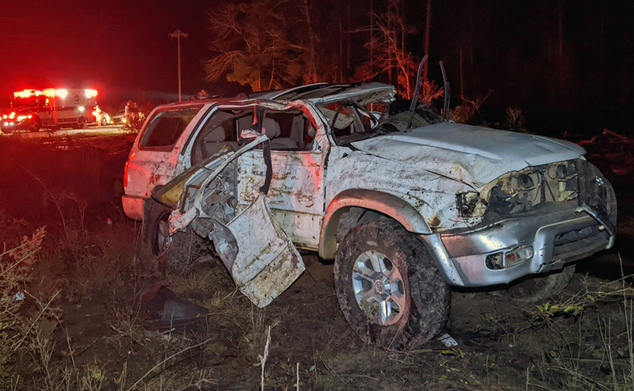 The injured driver was in a SUV that left the road and overturned, coming to rest about 200 feet away off the roadway. It was not immediately clear if the vehicle struck the utility pole, or if the utility pole was already down at the time of the crash and the driver swerved as a result.
