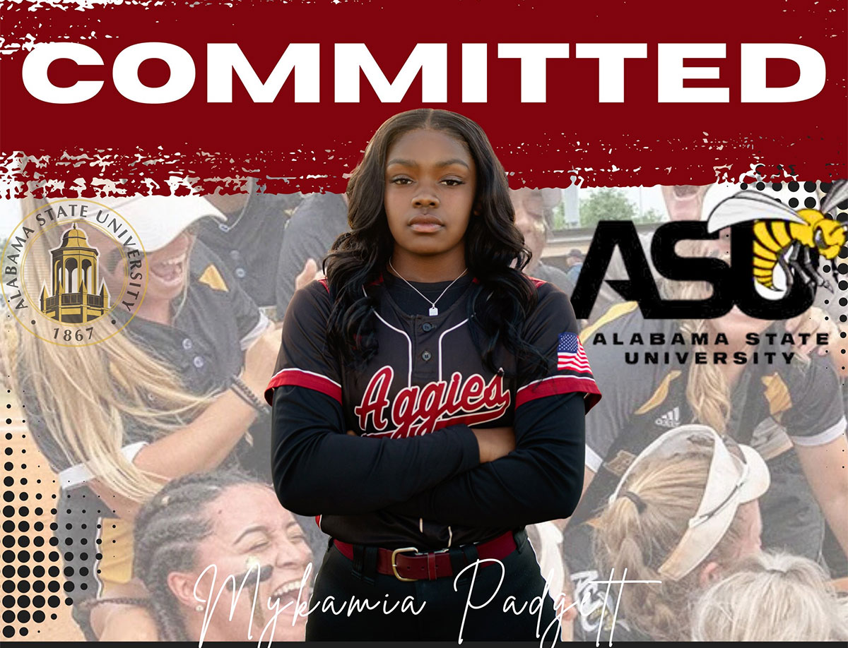 Tate High School pitcher and infielder Mykamia Padgett, a junior, has committed to play softball for the NCAA Division I Alabama State University Hornets in Montgomery. Graphic for NorthEscambia.com, click to enlarge.
