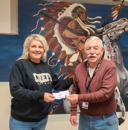 The Barrineau Park Historical Society (BPHS) presented a $500 donation on Wednesday to the Northview High School Lady Chiefs softball team.