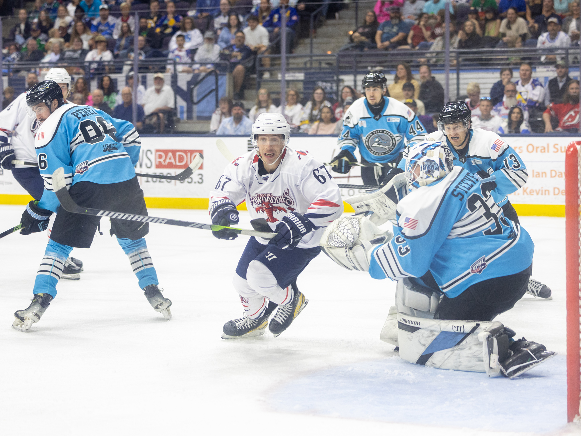 The Pensacola Ice Flyers took the ice as the Pensacola Crawdaddies for a special one-night-only Rebrand Night, and the alternate identity delivered a big result as Pensacola defeated the Quad City Storm 5–2 on Friday night at the Hangar.