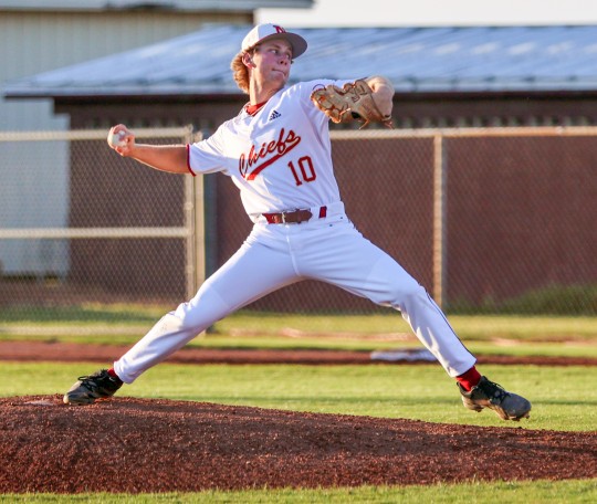 Starting pitcher Grayson Burns earned the win for the Chiefs, surrendering four hits and one unearned rn in five and two-thirds innings, while striking out nine and walking one. Bryant Mason pitched one and one-third innings with no hits and no runs, walking two and striking out three.