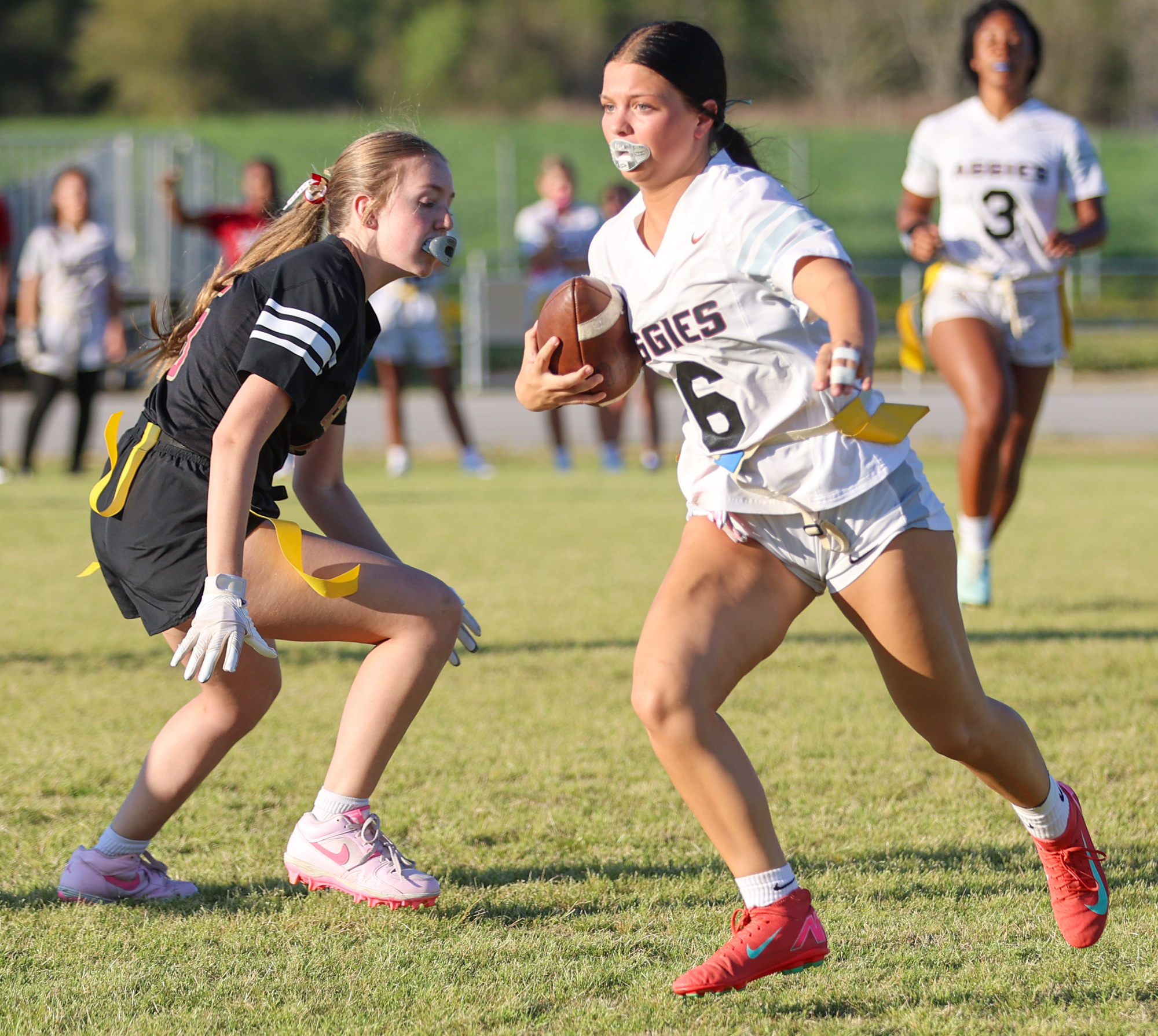 The Aggies’ offense was led by seniors Taelyn Hubbard and Tori Sappington, who each found the back of the net four times. Hubbard added an assist to finish with a team-high five points. Junior Kira Bigalow also had a multi-goal performance with two scores and an assist. Other goals were contributed by I. McNeill and Trinity Torres.