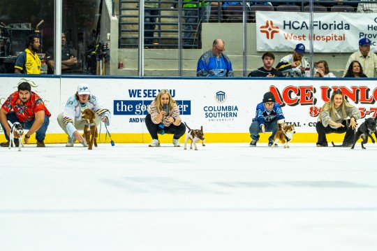The intermissions brought their own entertainment as 96 dogs competed in races on the ice, with tons of cute chaos delighting the crowd throughout the night.
