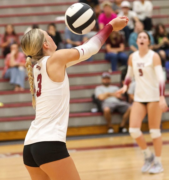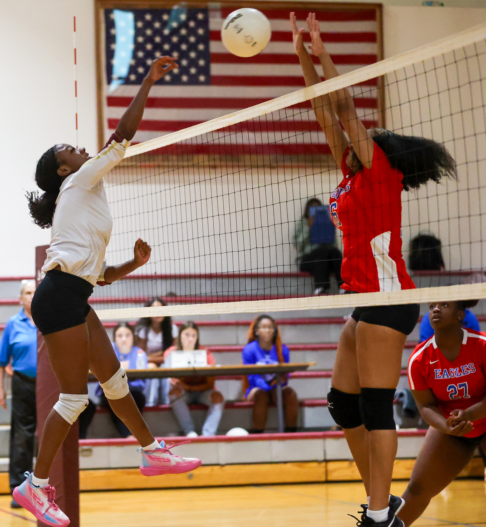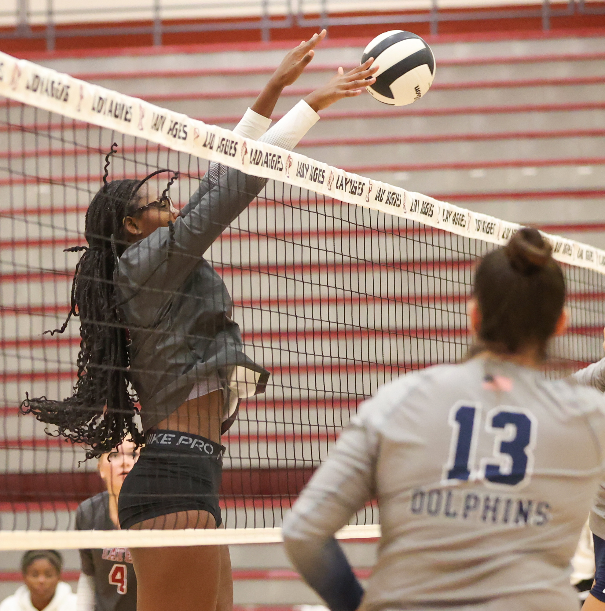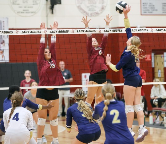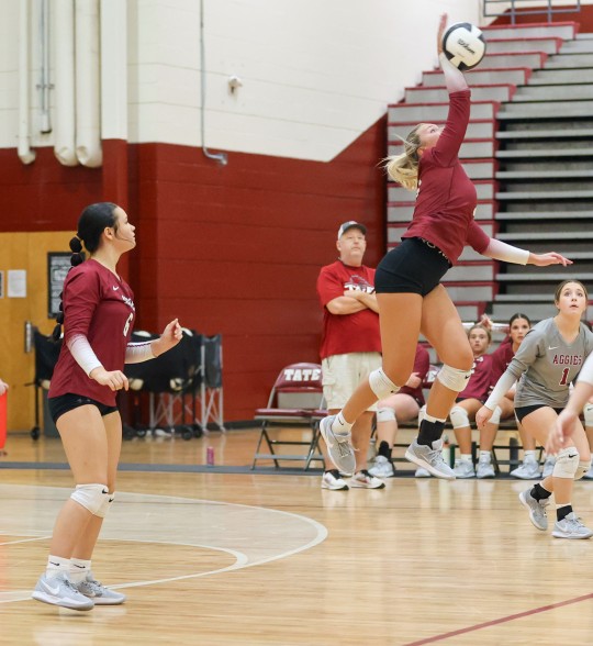 Tate overpowered the Royals with strong sets of 25-9 and 25-7 to jump out to a commanding two-set lead. Jay High showed improved effort and resolve in the third set, pushing the Aggies more closely before Tate closed out the match with a 25-17 finish.