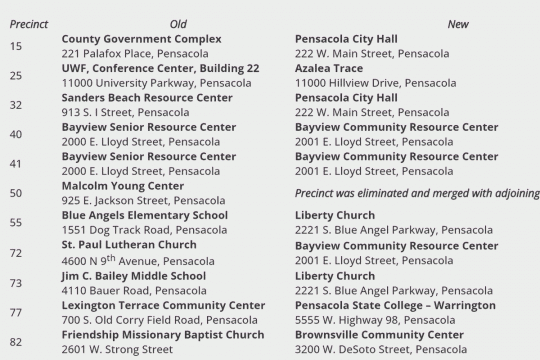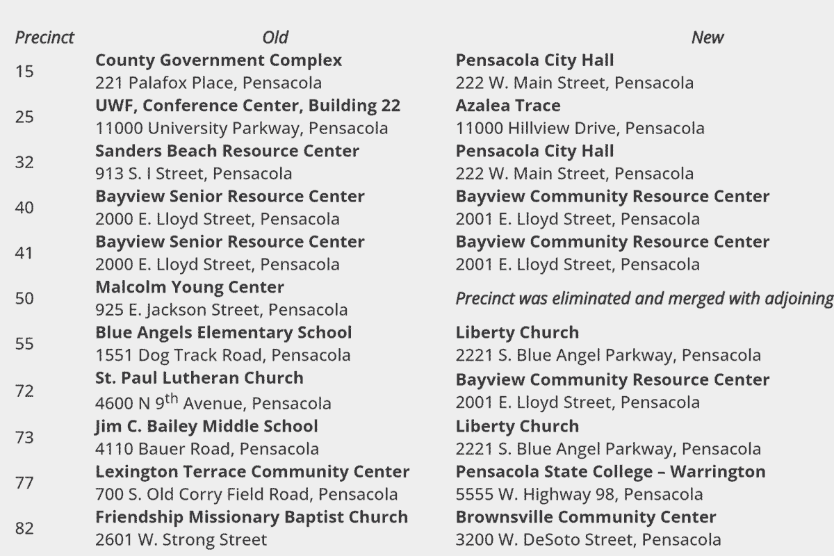 Several polling locations polling locations in Escambia County for the 2022 Primary Election have changed since the 2020 elections.