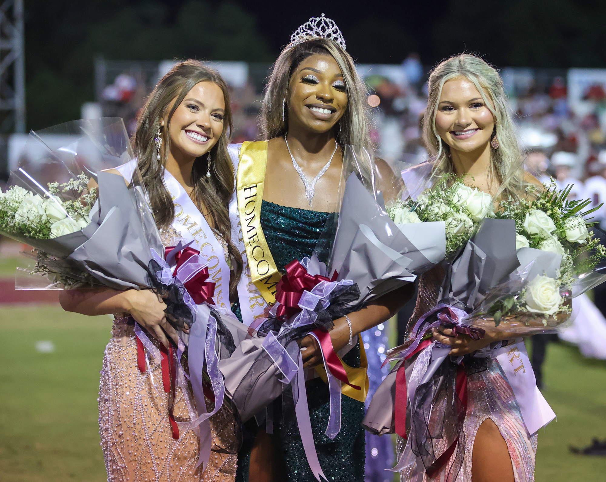 Pictured above: (L-R) First runner-up Taylor Dyer, Homecoming Queen Destiny Moorer, and second runner-up McKenna Lister. NorthEscambia.com photos, click to enlarge.