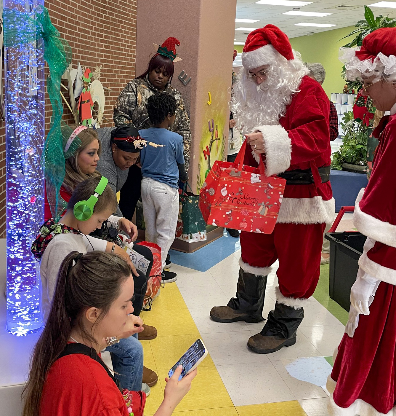 The volunteers brought holiday light and laughter, along with a gift for over 130 students from their personal wish lists. Each gift was hand-delivered with love from Santa, and Mrs. Claus.