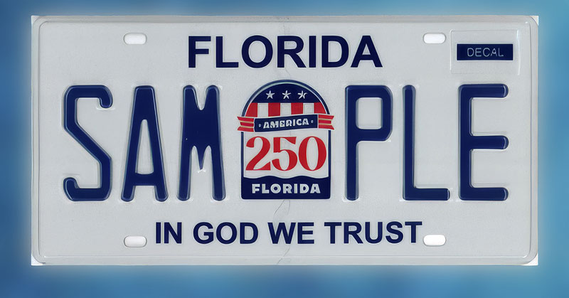 In honor of the United States’ 250th anniversary on July 4th, 2026, the Florida Department of Highway Safety and Motor Vehicles has announced a new America 250 commemorative license plate.