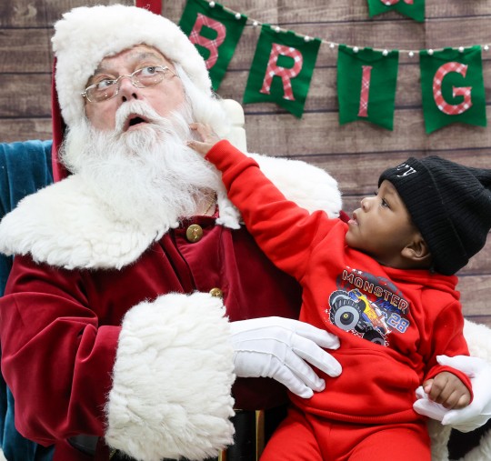 A little boy tested Santa’s beard just to make sure it was real (pictured).