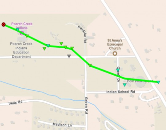 The tornado continued to the east-southeast, reaching its strongest point prior to crossing Lynn McGhee Drive where it snapped numerous small hardwood trees and pushed over several road signs. This is also where the tornado reached its peak width at approximately 80 yards.