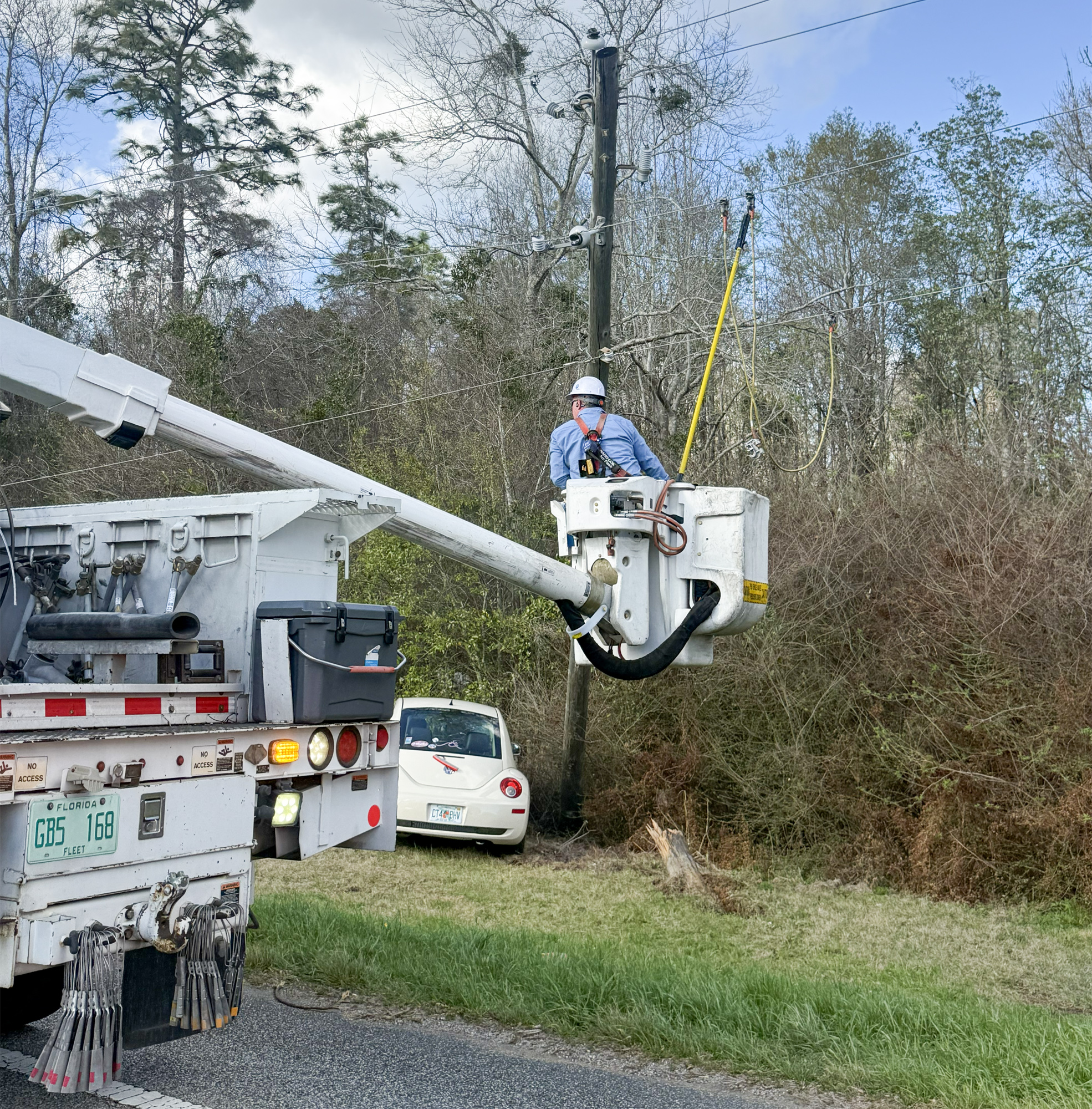 The power pole was snapped during the crash. Florida Power & Light reported that up to 530 customers lost power due to the wreck, which also cut power to the traffic signal at Highway 29 and Highway 97 for a brief period. FPL reported that power had been restored by about 4 p.m.