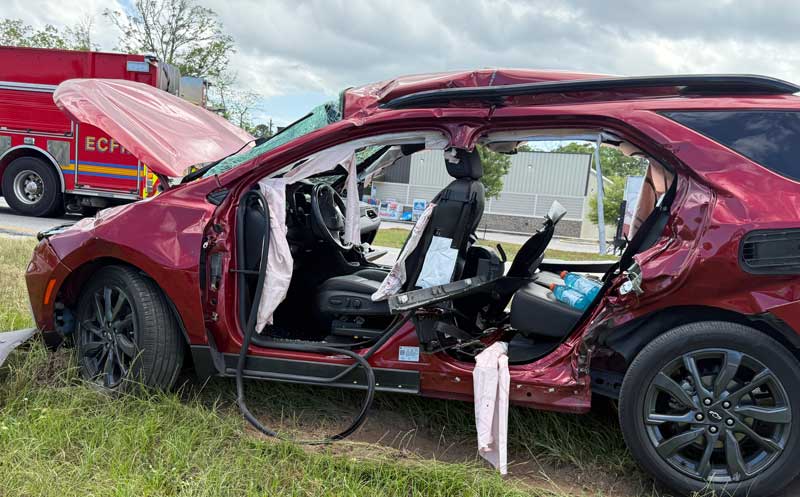 Firefighters removed the doors from the vehicle to extricate the victim, who was transported by Escambia County EMS to a Pensacola hospital.