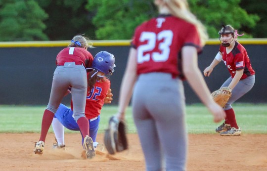 Junior Kylie Reed was running to second base when she collided with the Tate second baseman. She was transported to Sacred Heart Hospital by Escambia County EMS.