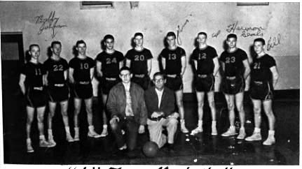 Standing: Elgia Peety, Bobby Johnson, Billy Campbell, Sam Bird, Charles Sansom, Jimmy King, Al Smith, Herman Seales, Bill Tuberville. Kneeling: Allen Bird, Manager: Mr. John F. Waters, Coach.